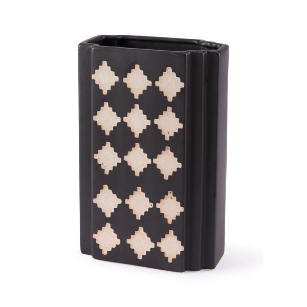 7.7" X 4.3" X 11.8" Bold Black And Beige Rectangular Vase