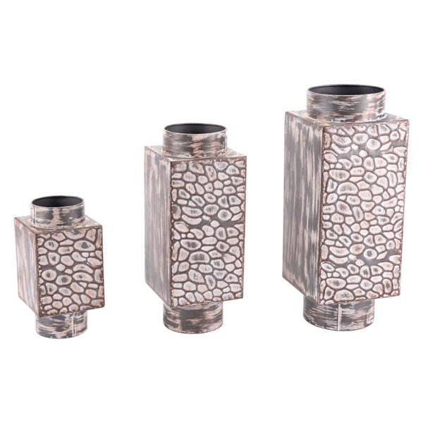 6.3" X 6.3" X 16.9" 3 Pcs Antique Steel Vases