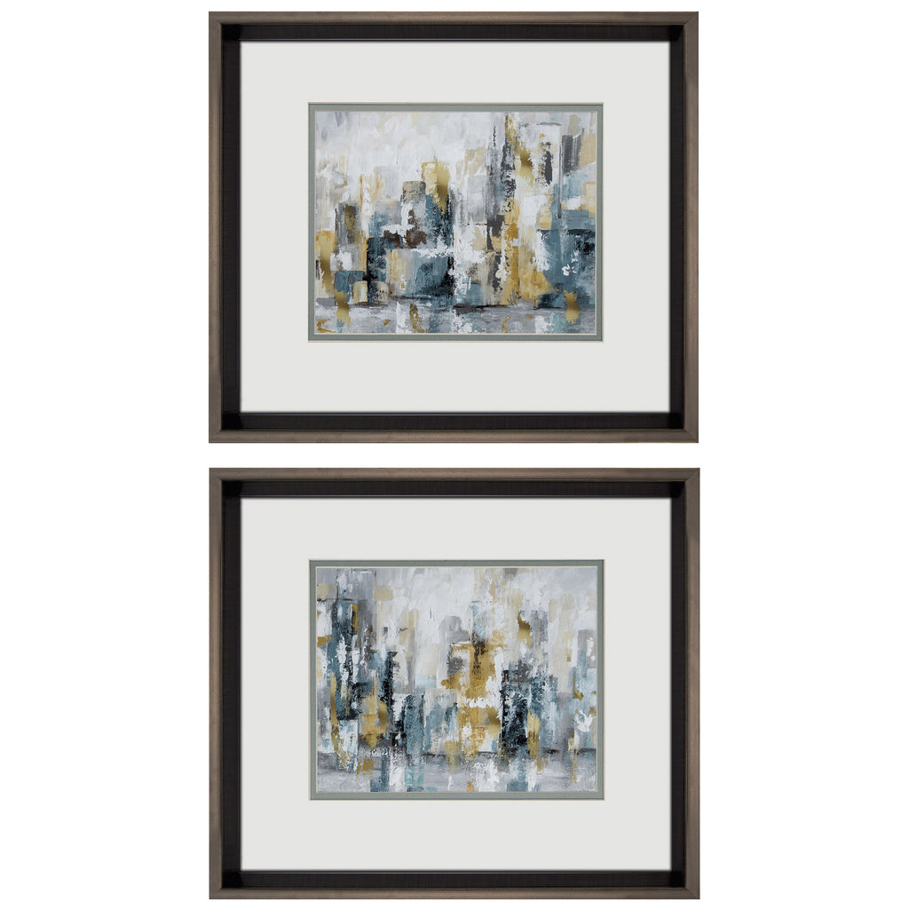 17" X 15" Brushed Silver Frame Blue Gold Abstract (Set of 2)