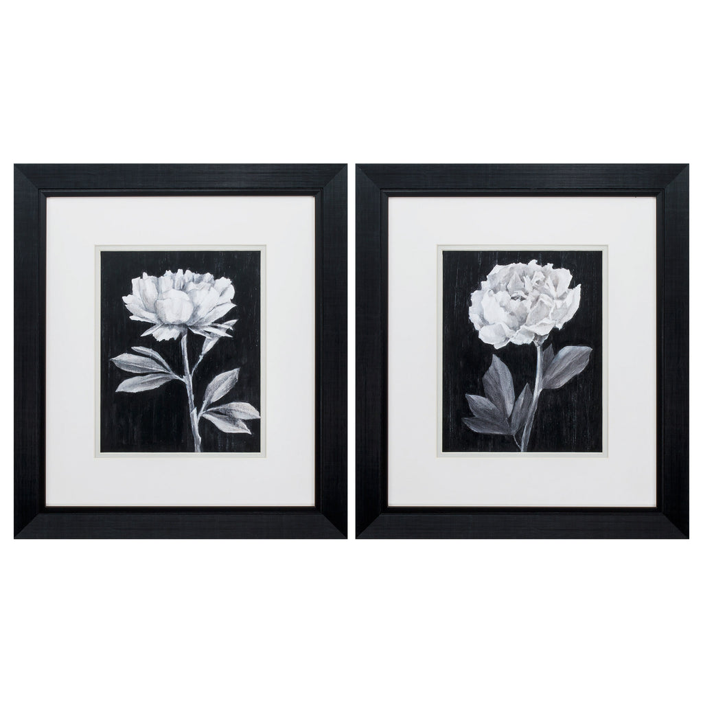 16" X 18" Black Frame Black White Flowers (Set of 2)