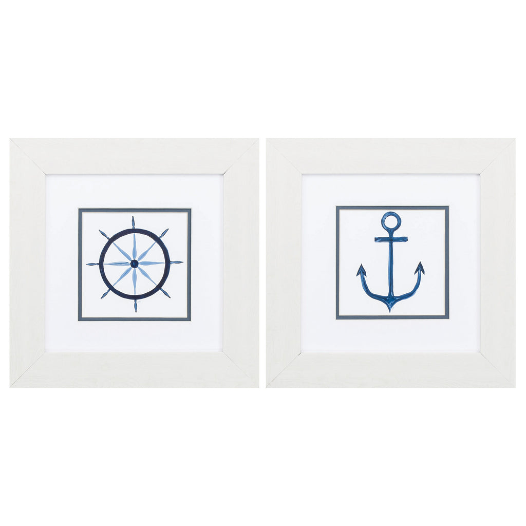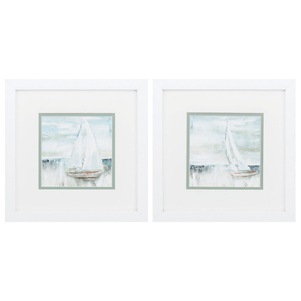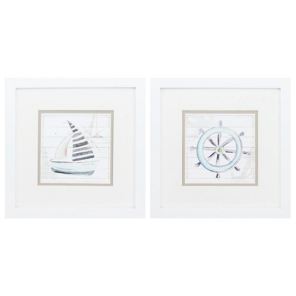 13" X 13" White Frame Sailing Set of 2