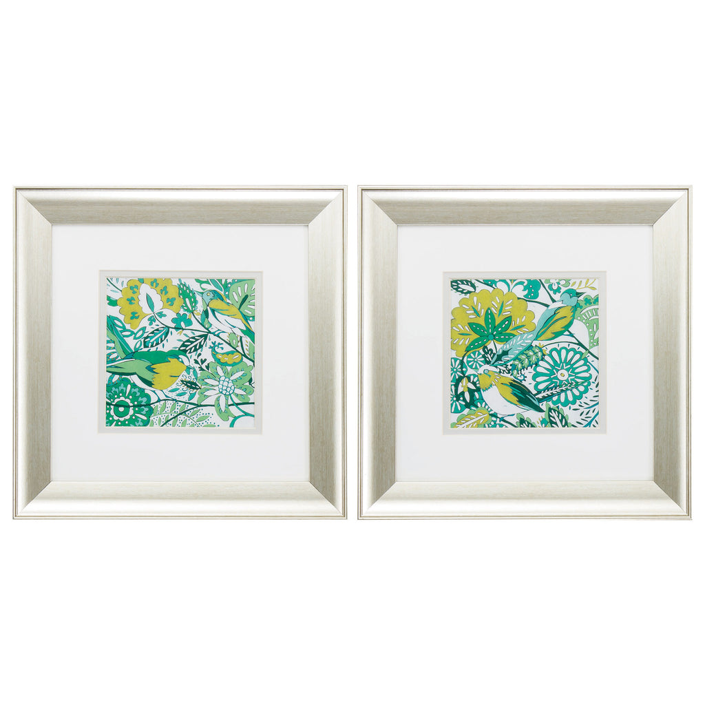 13" X 13" Brushed Silver Frame Lovebirds (Set of 2)