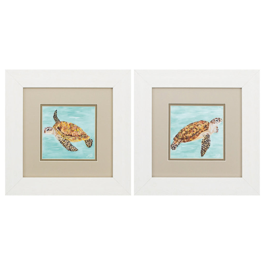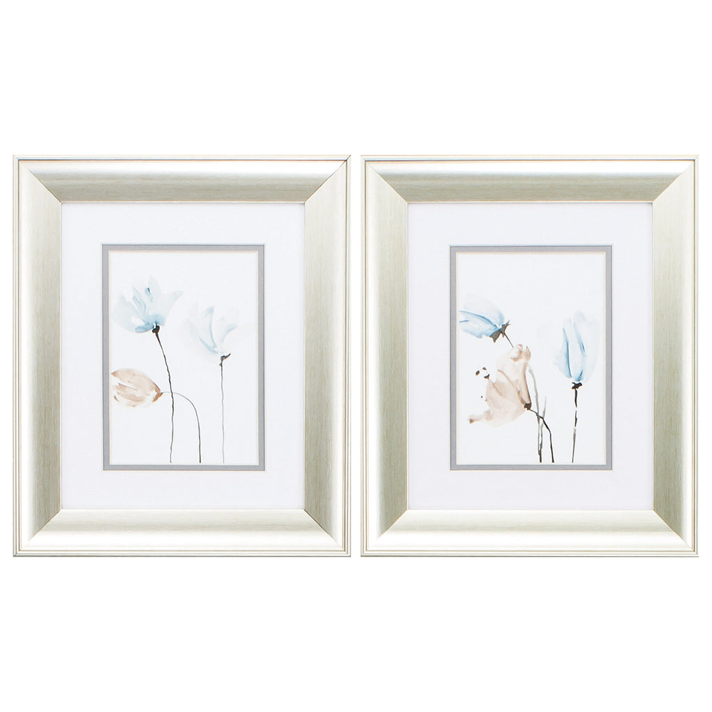 13" X 13" Brushed Silver Frame Blue Watercolor (Set of 2)