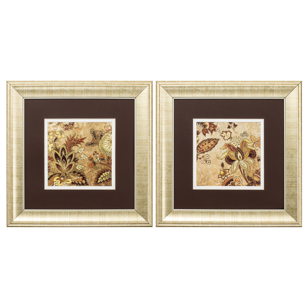 13" X 13" Gold Frame Floral Beige (Set of 2)