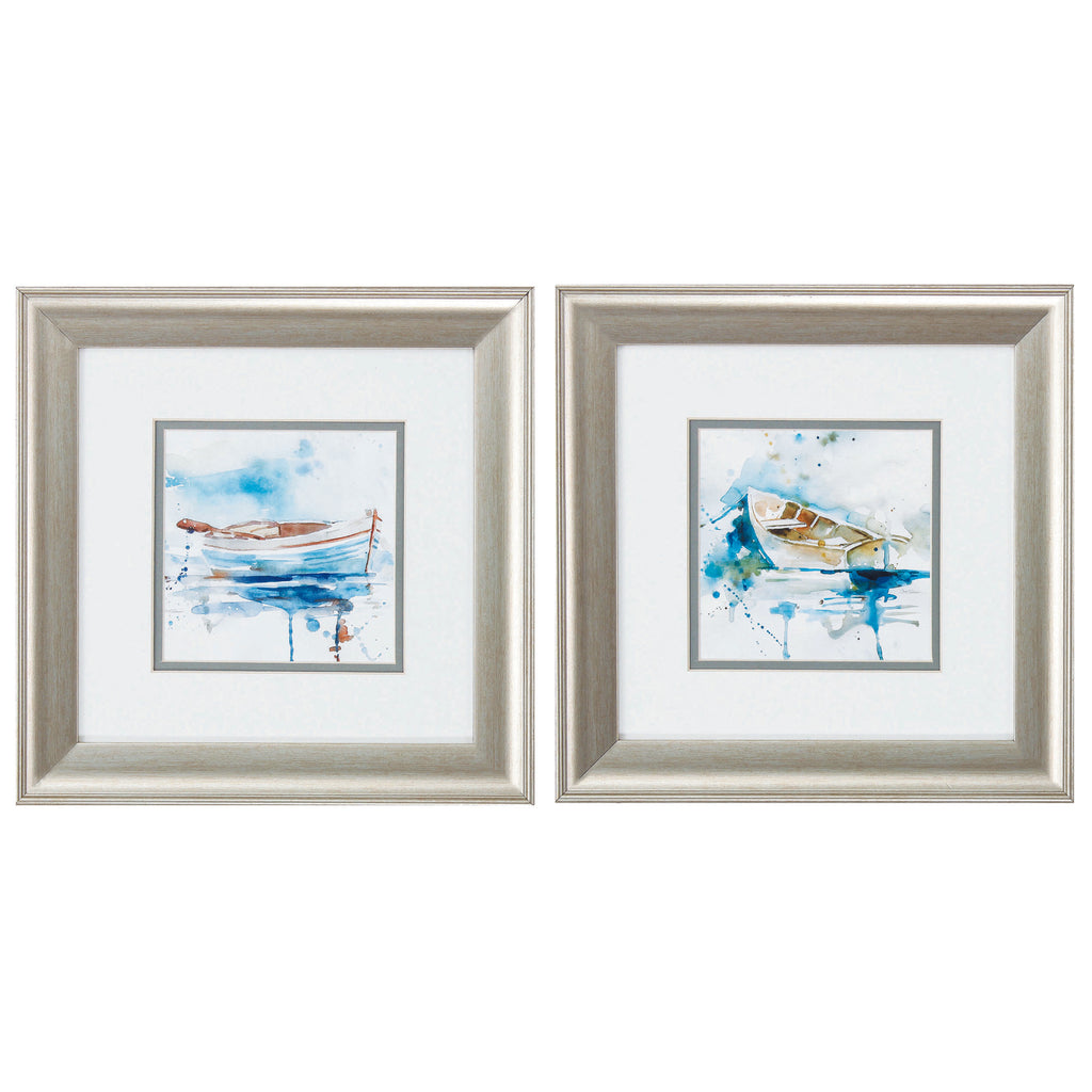 13" X 13" Brushed Silver Frame Malibu Marina (Set of 2)