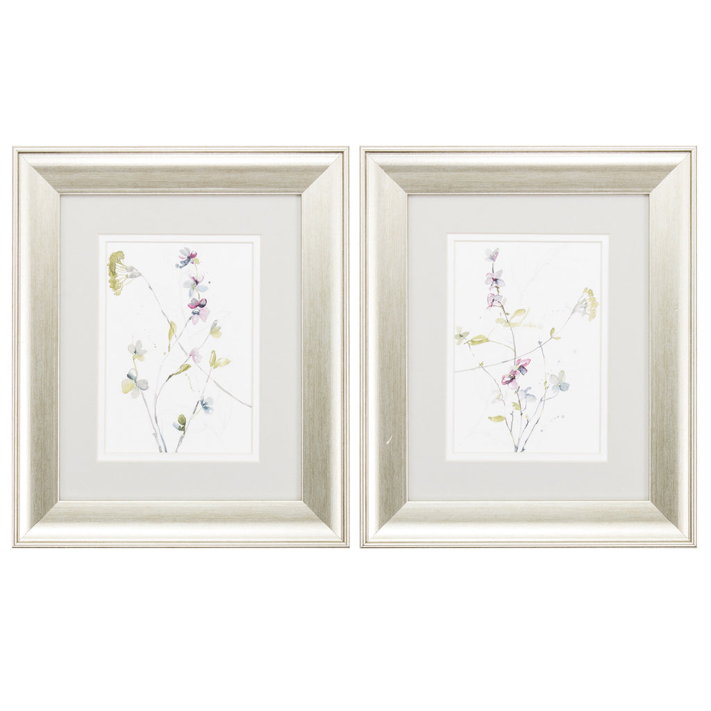 11" X 13" Brushed Silver Frame Branches & Blossoms (Set of 2)