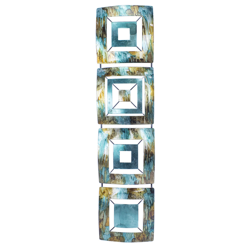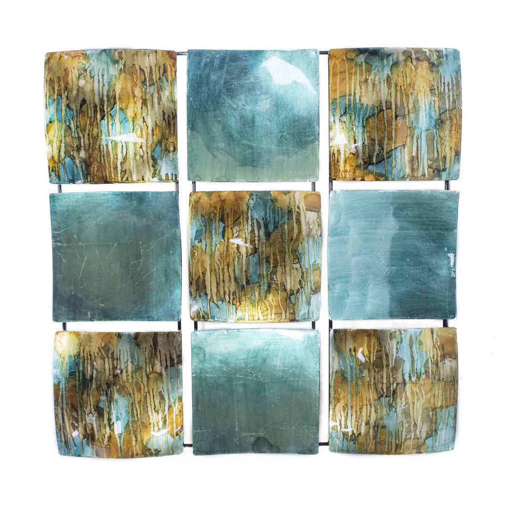 24.5" X 2.5" X 24.5" Turquoise Copper and Bronze Metal Panel Square Wall Decor