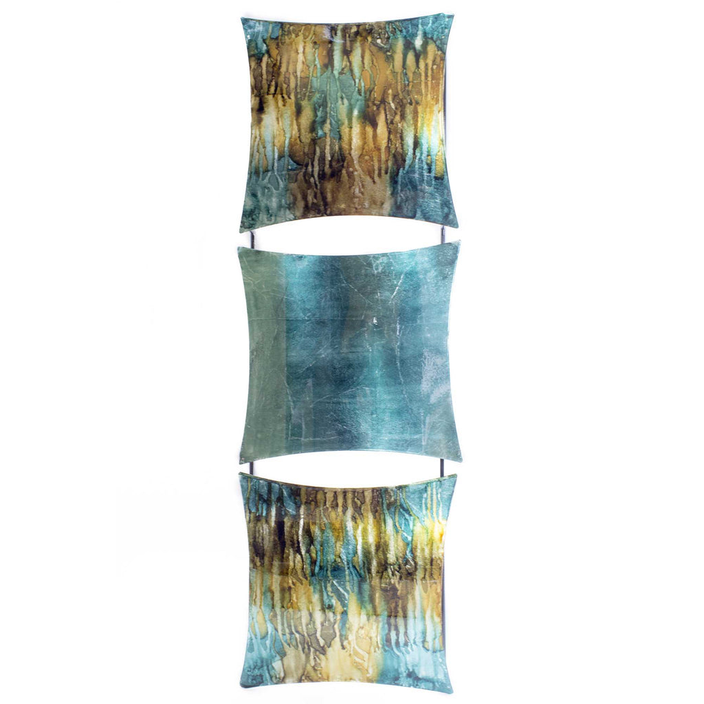 8" X 2.75" X 24.5" Turquoise Copper and Bronze Metal Vertical Panel Wall Decor