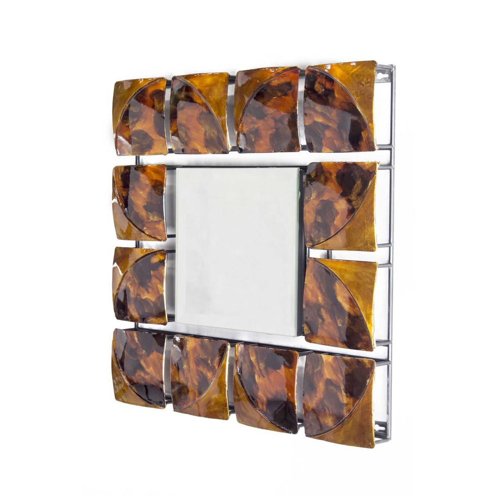 17.5" X 17.5" X 1.75" Red Metal Glass Hanging Wall Mirror
