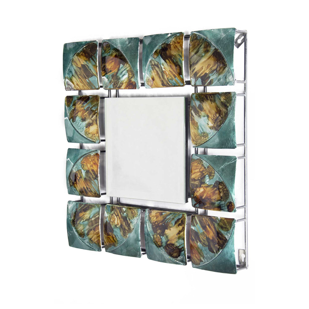 17.5" X 17.5" X 1.75" Blue Metal Glass Hanging Wall Mirror
