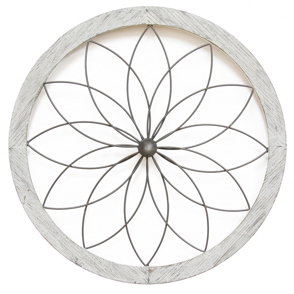Distressed Chic Flower Metal and Wood Wall Decor