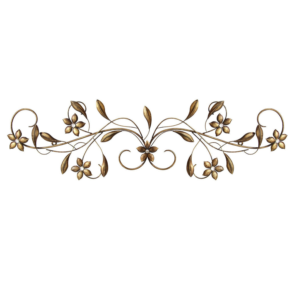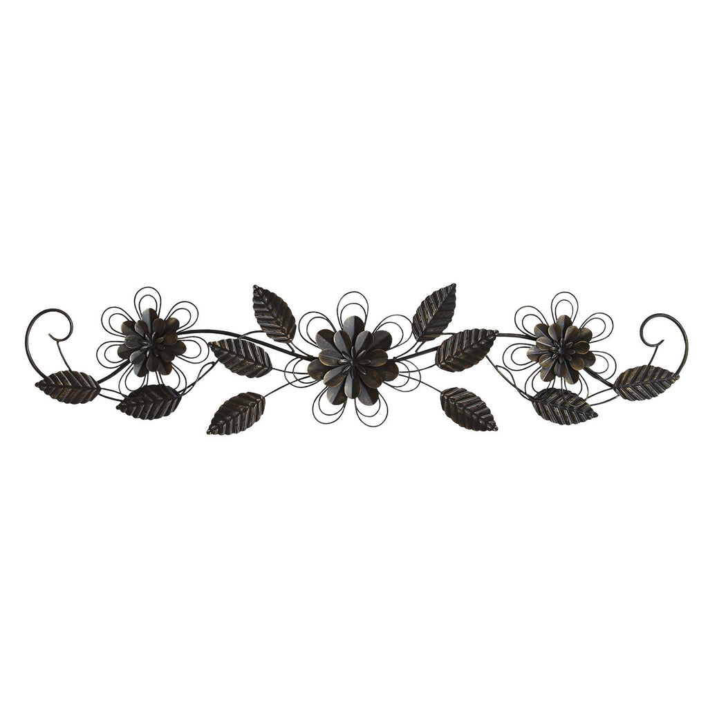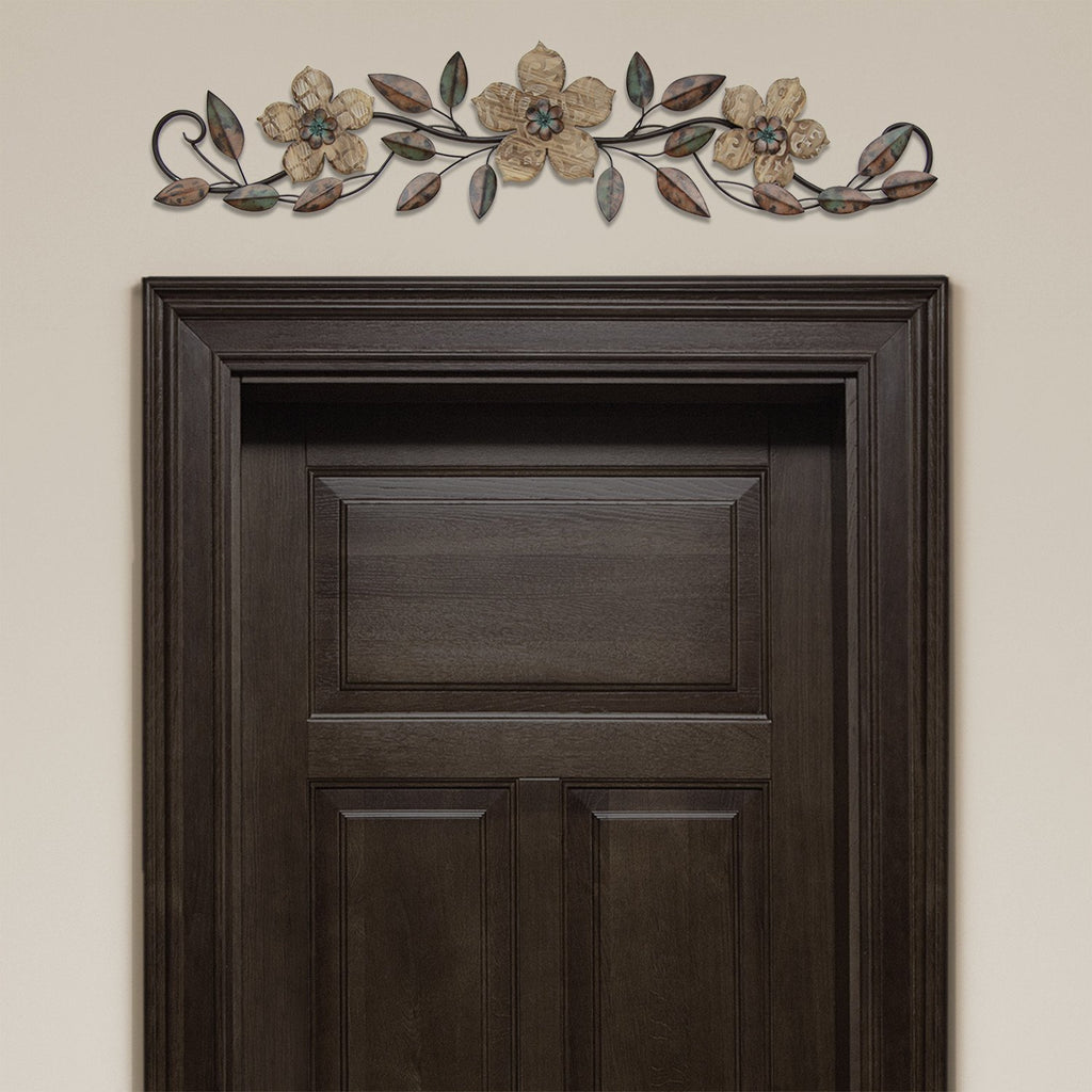 Floral and Espresso Wood Over The Door Metal Wall Decor