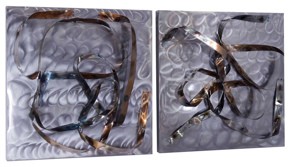 24" X 10" X 24" Metallic Multi Color Metal Steel Swirls On Plaque Square Wall Panel Se