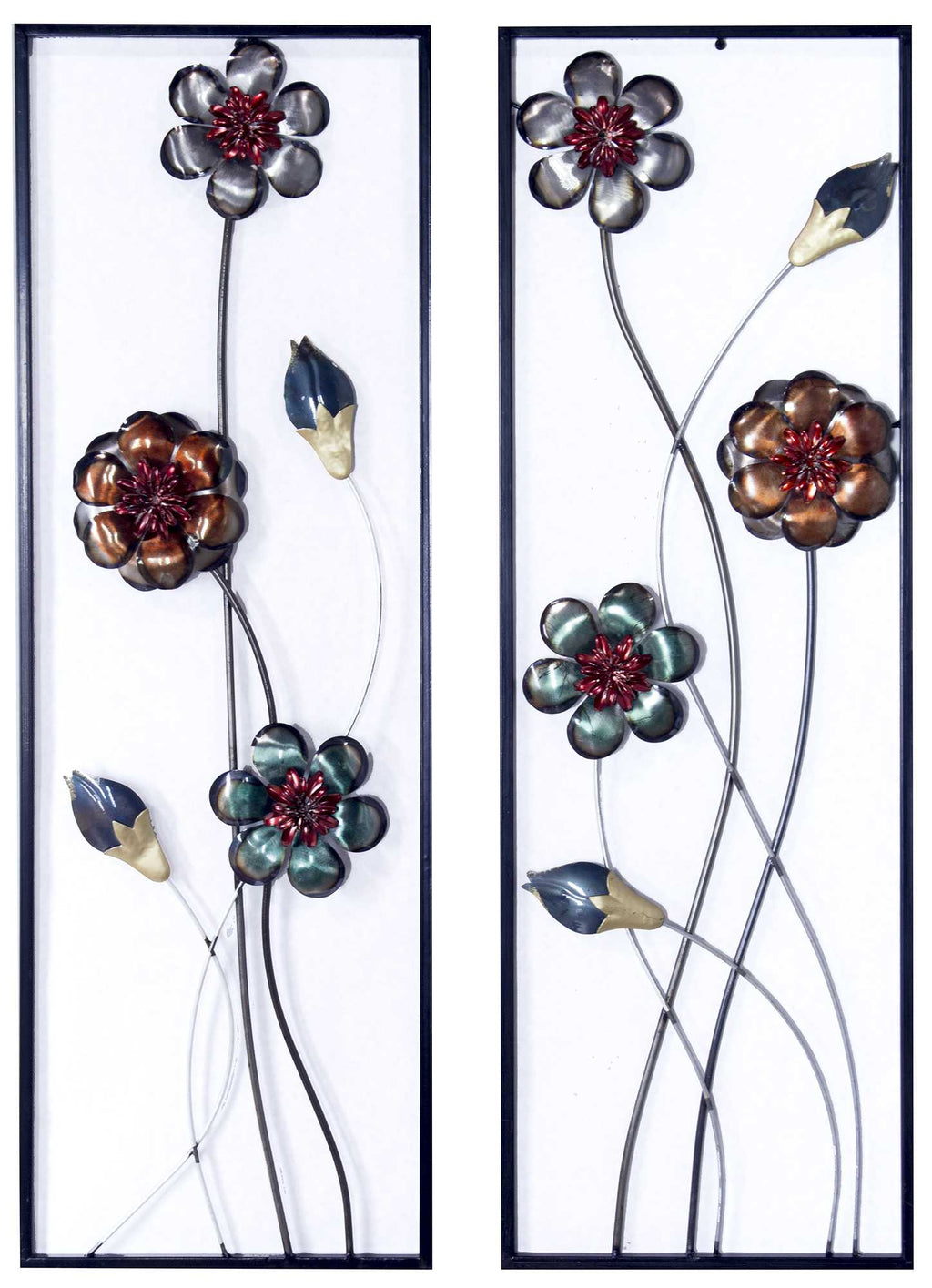 39" X 6" X 15" Metallic Multi-Color Metal Garden S And Blooms Vertical Wall Panel Set