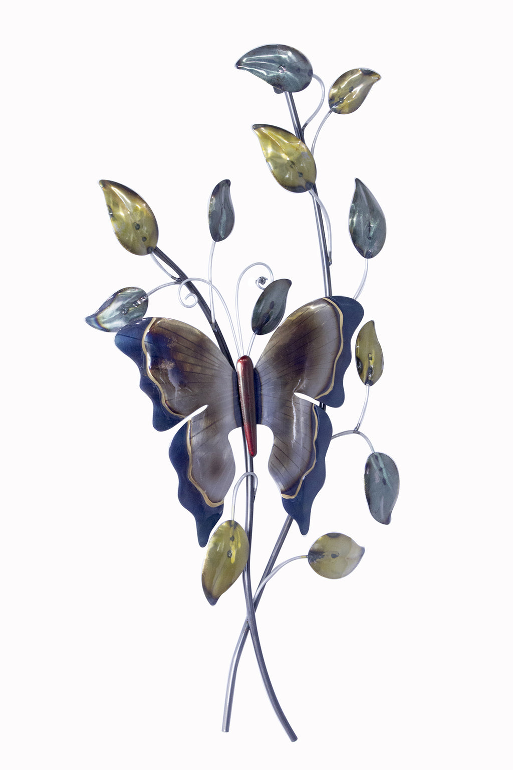 34" X 3" X 19" Metallic Multi Color Metal Large Butterfly On Branches Wall Decor