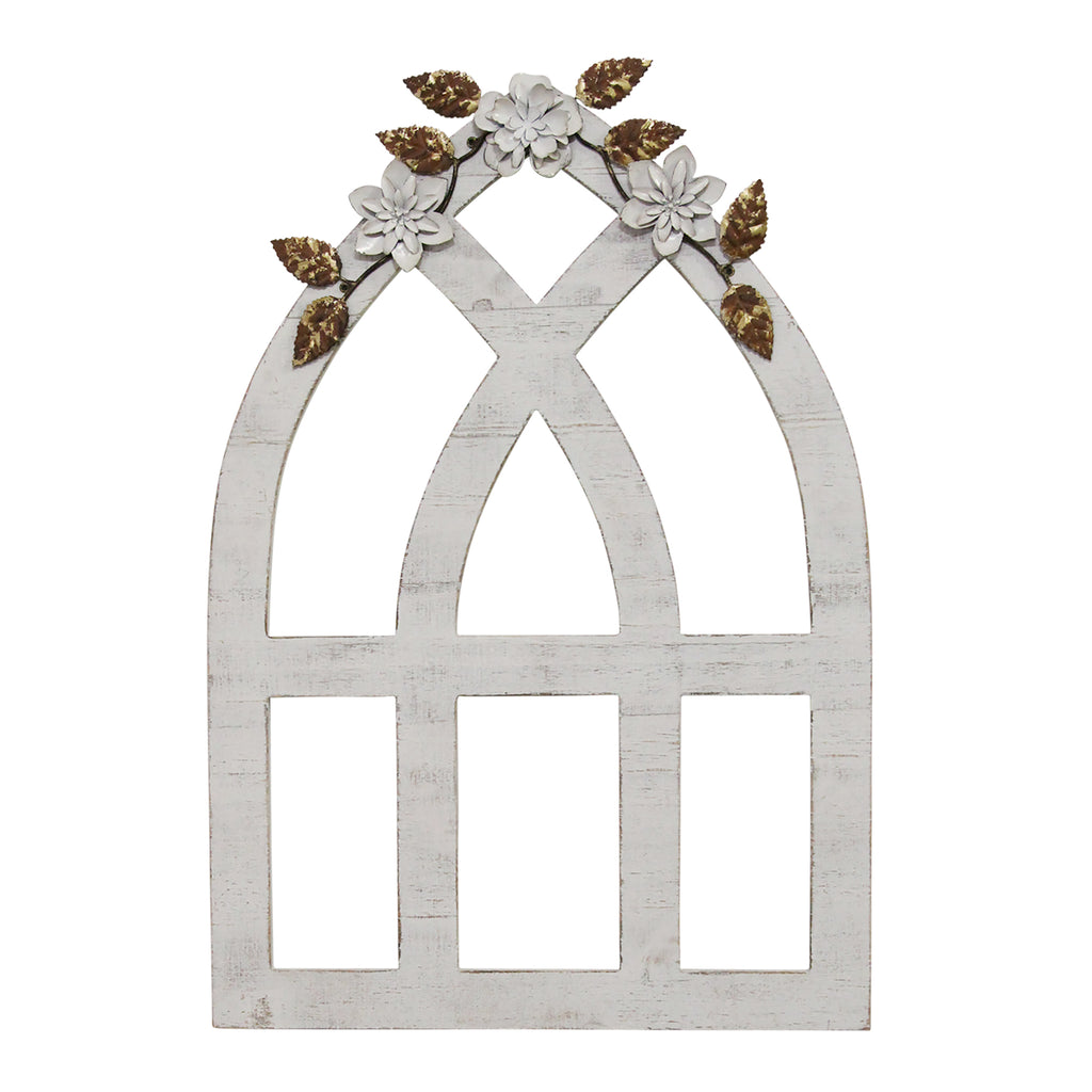 Distressed White Arch w/ Metal Flowers Wall Decor
