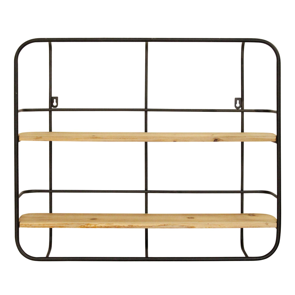 S 2 Farmhouse Wood Shelves with Black Metal Frame
