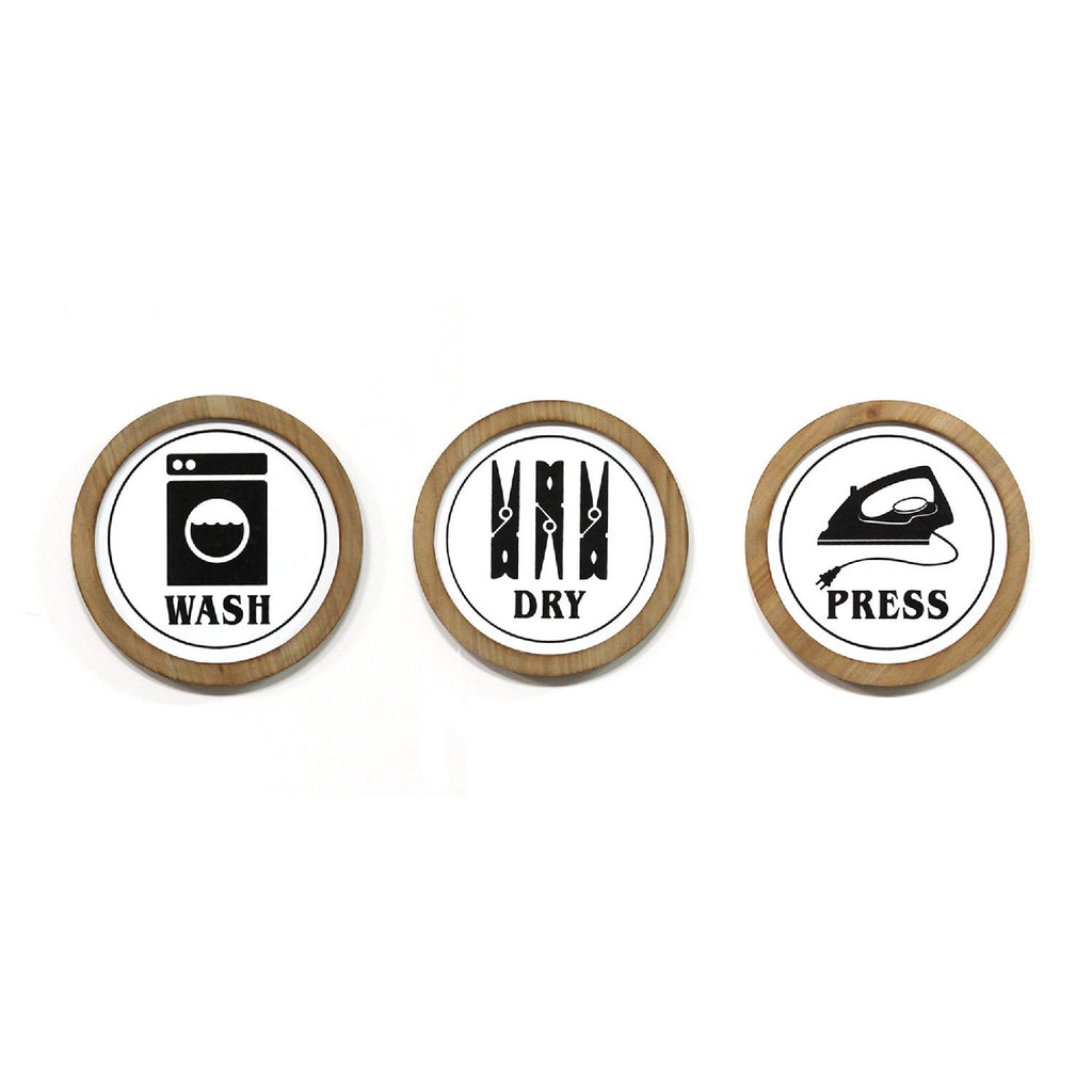 S/3 "Wash, Dry, Press" Wood Framed Wall Art