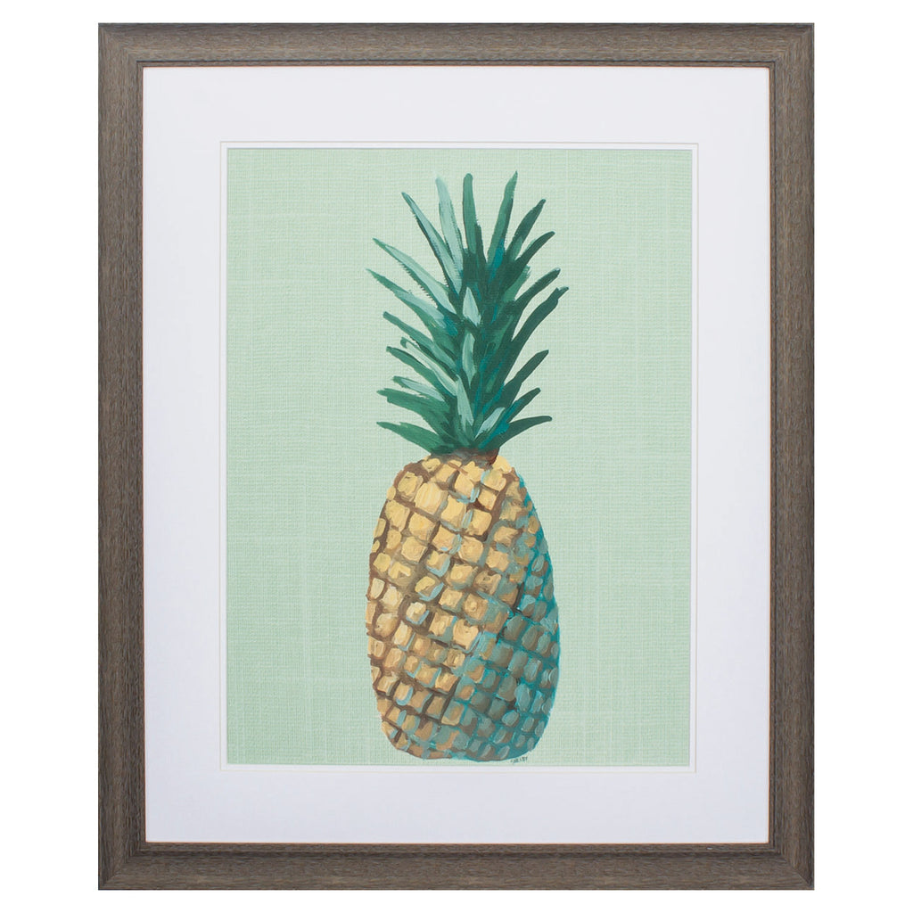 27" X 33" Distressed Wood Toned Frame Pineapple On Green