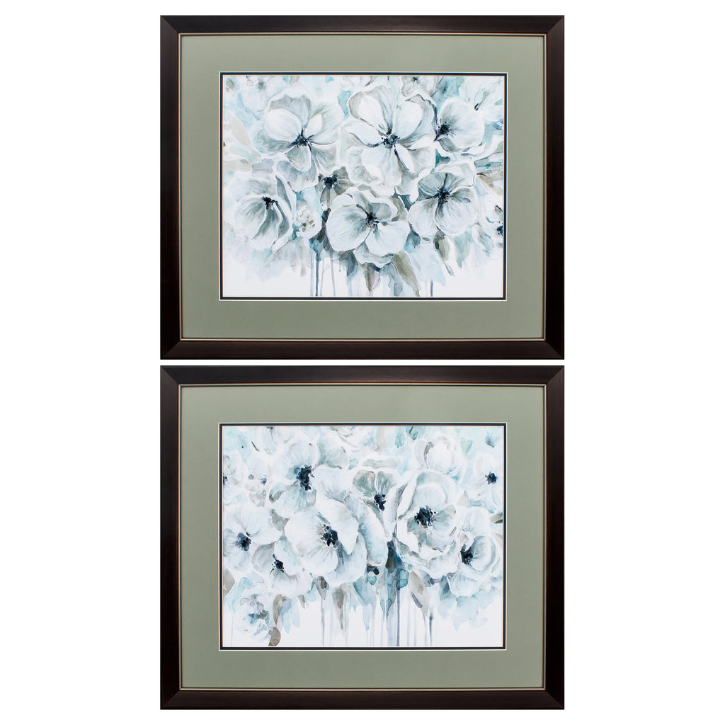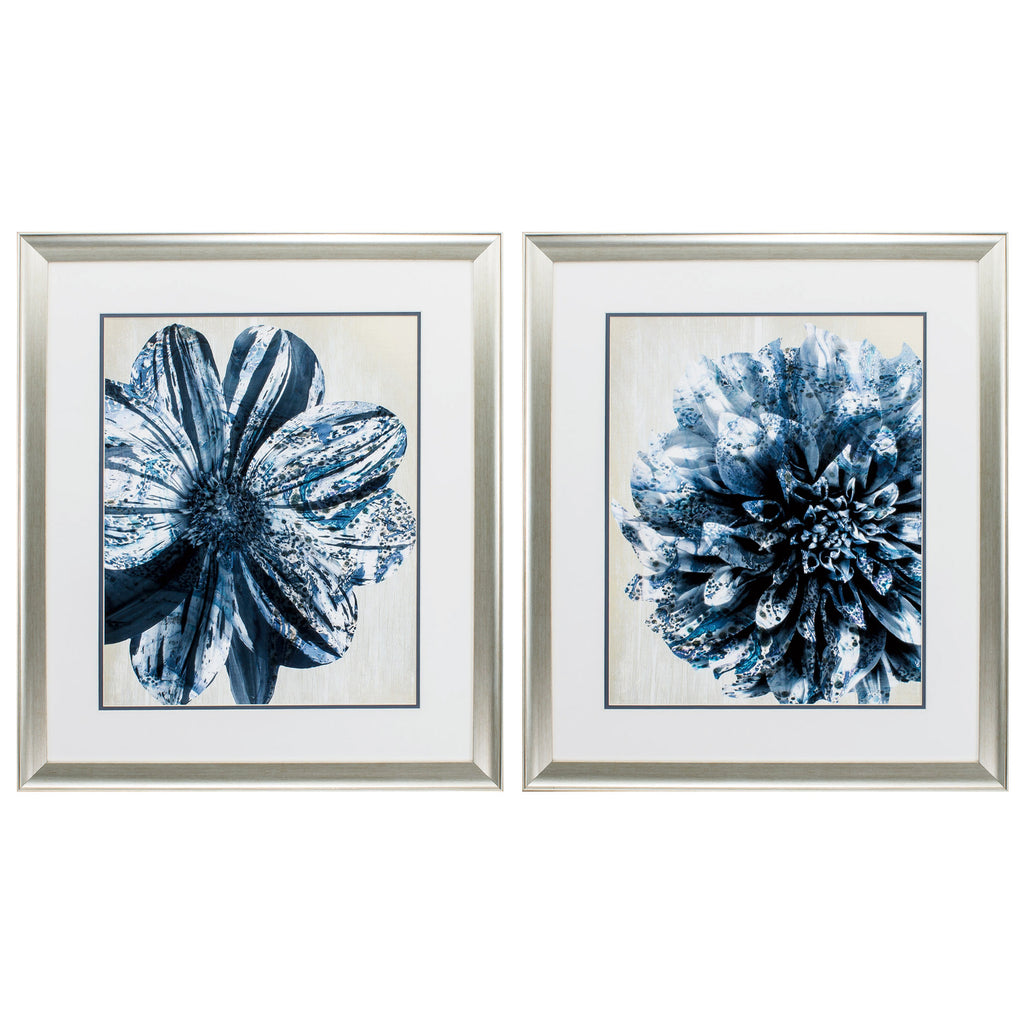 24" X 28" Brushed Silver Frame Blue Blossom (Set of 2)