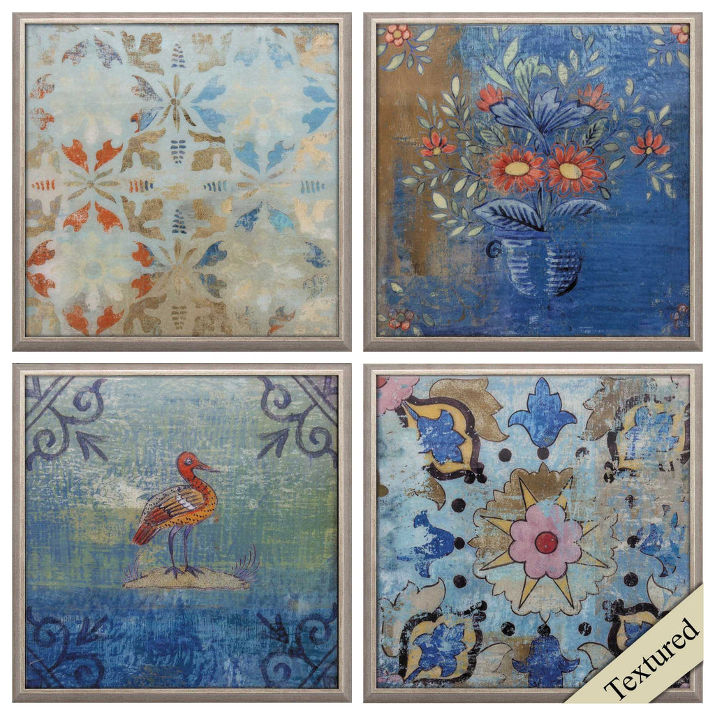 13" X 13" Champagne Color Frame Boho 1 (Set of 4)