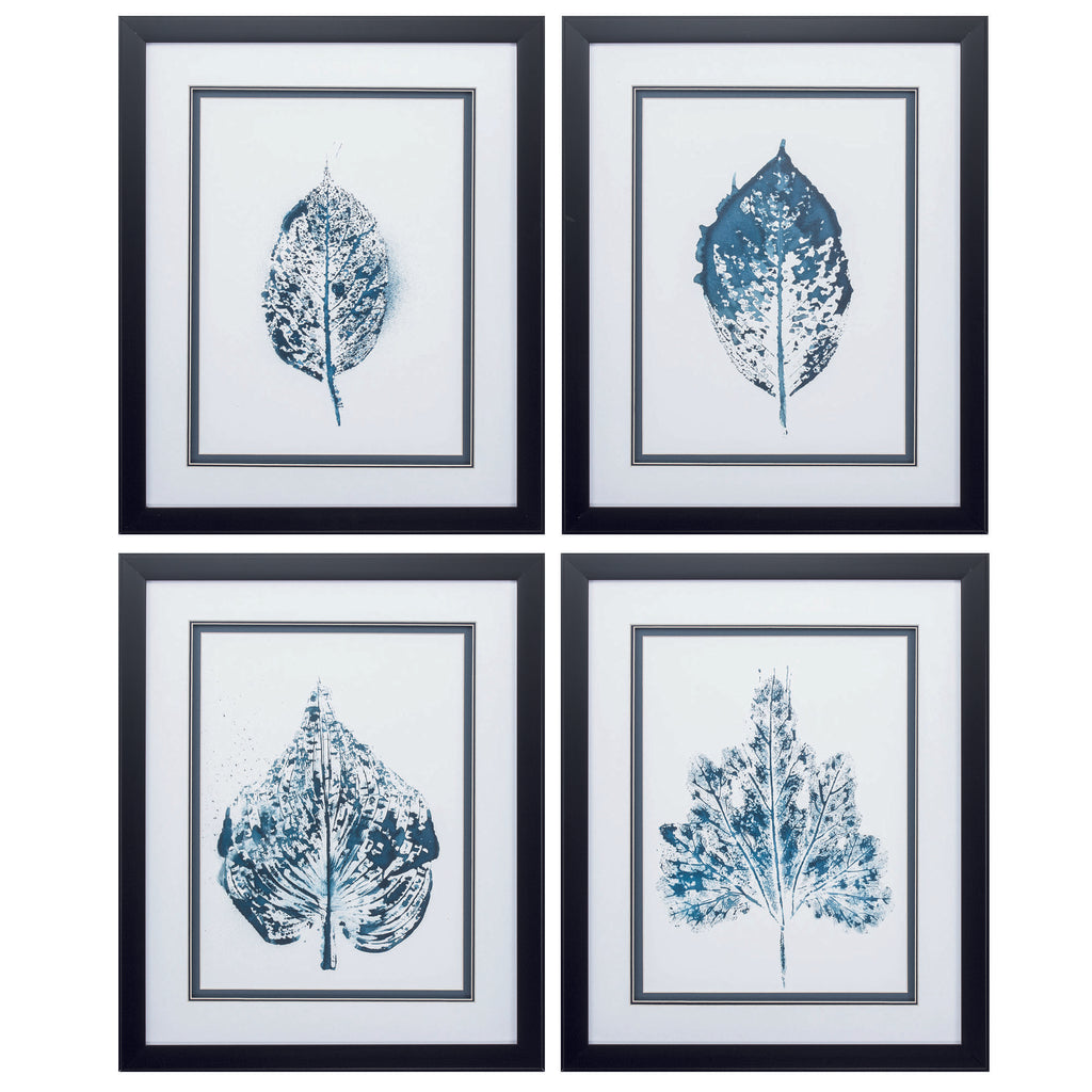 18" X 22" Dark Wood Toned Frame Beginning In Blue (Set of 4)