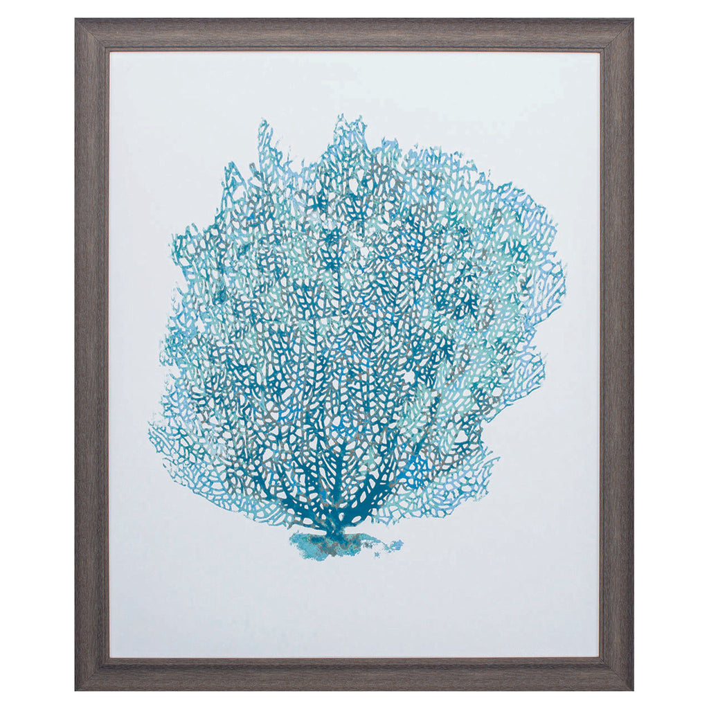 27" X 33" Distressed Wood Toned Frame Aqua Coral On White II