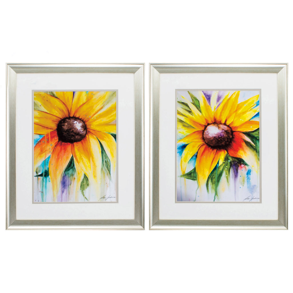 20" X 24" Brushed Silver Frame Sunflower Burst (Set of 2)