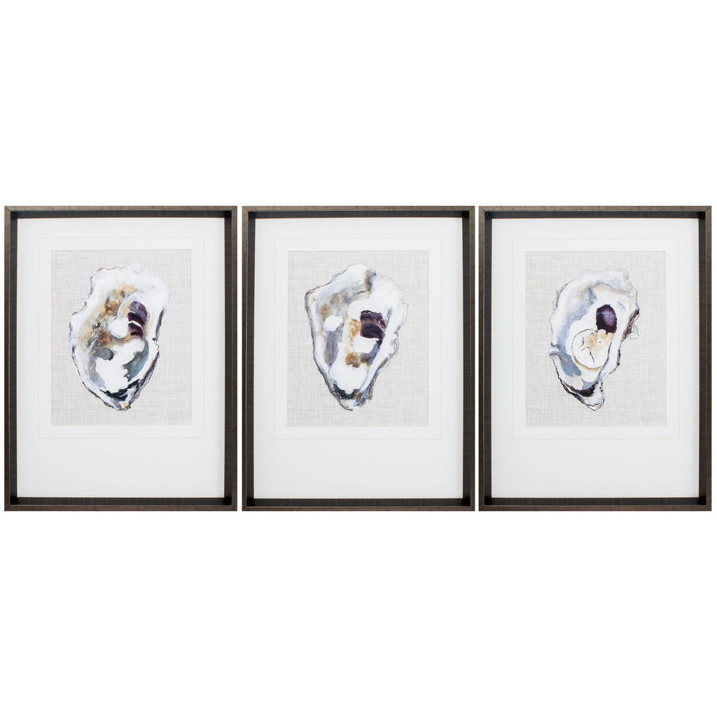 18" X 24" Brushed Silver Frame Oyster Shell Study (Set of 3)