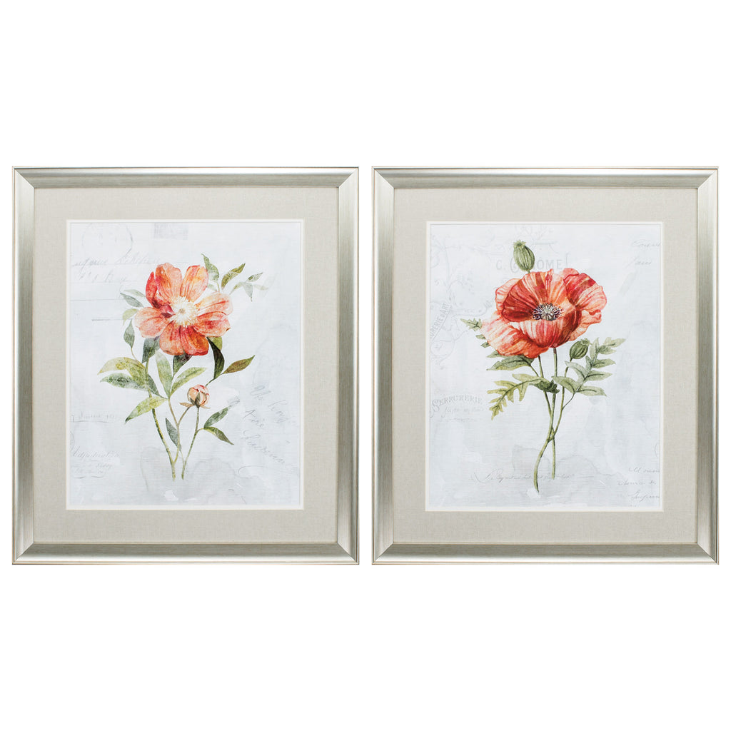 24" X 28" Brushed Silver Frame Peony Poppy (Set of 2)