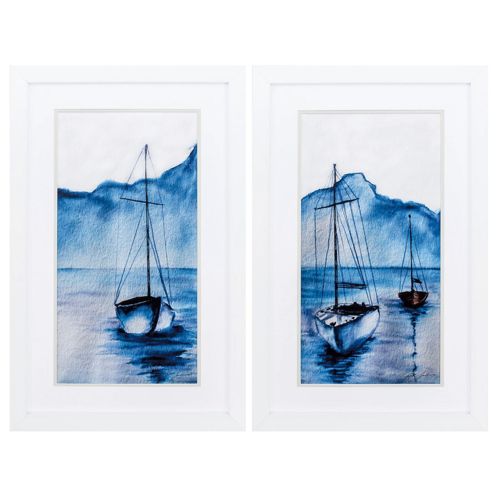 27" X 27" White Frame Watercolor Marina (Set of 2)