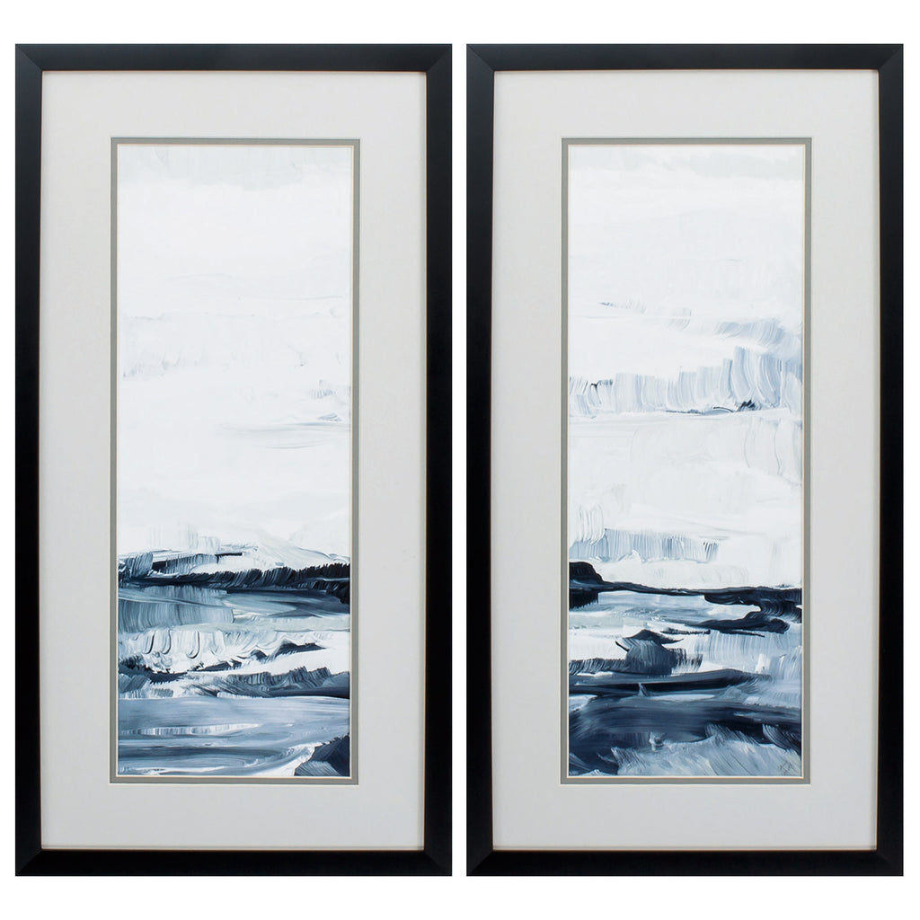 26" X 14" Dark Wood Toned Frame Deep Blue Sea Panel (Set of 2)