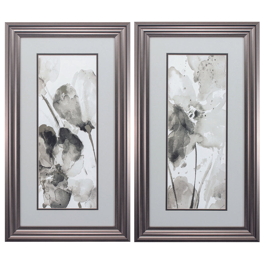 15" X 27" Gunmetal Gray Frame Abstract Flower (Set of 2)