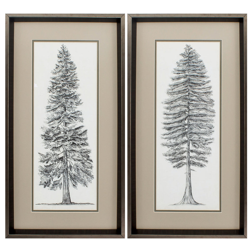 14" X 26" Brushed Silver Frame Pacific Tree Sketch (Set of 2)