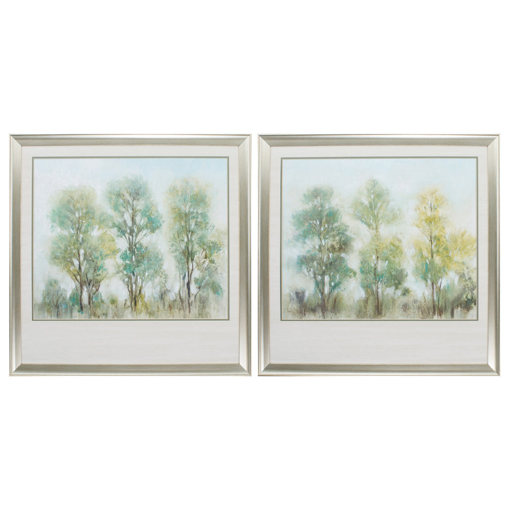 30" X 30" Brushed Silver Frame Muted Trees (Set of 2)