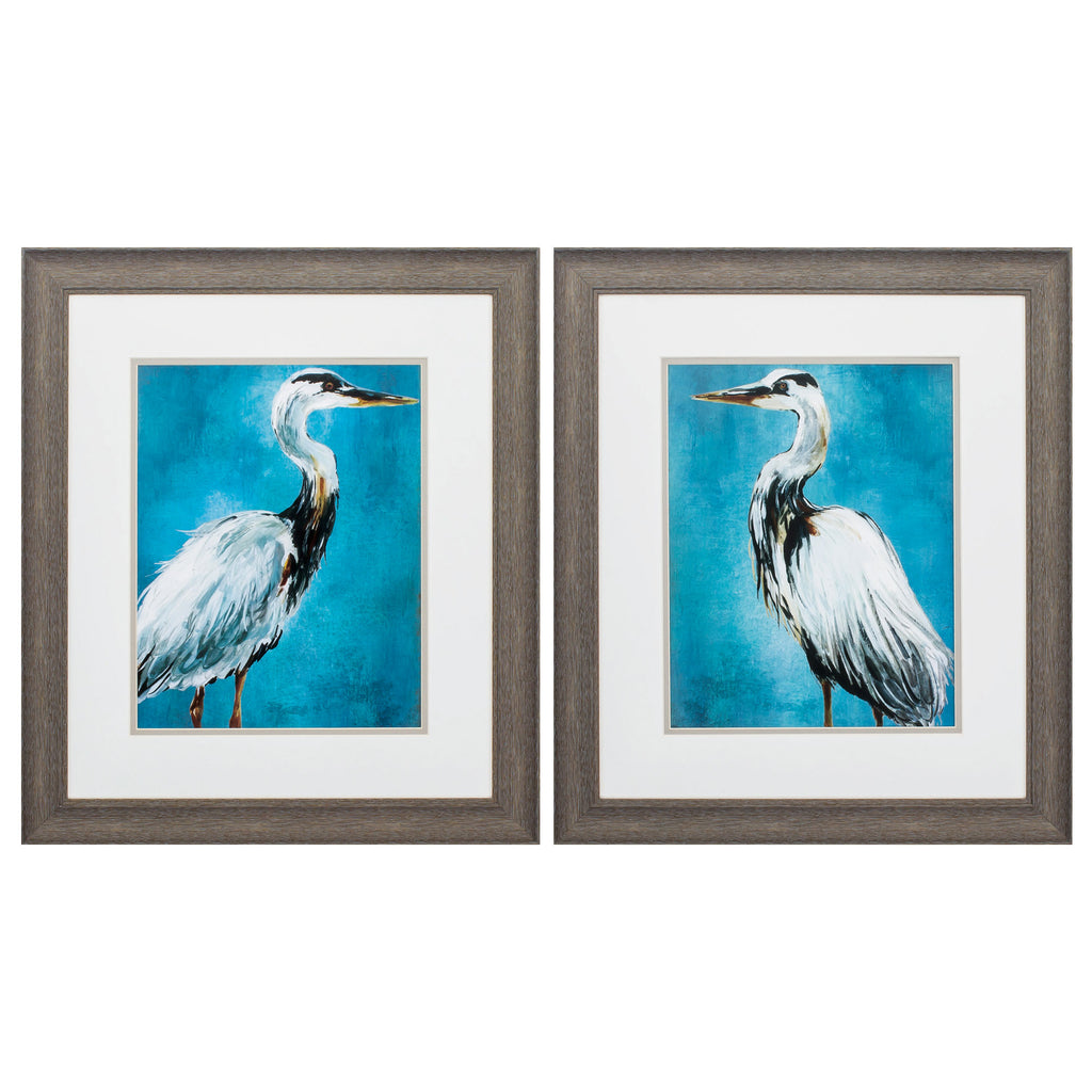 19" X 22" Distressed Wood Toned Frame Great Blue Heron (Set of 2)