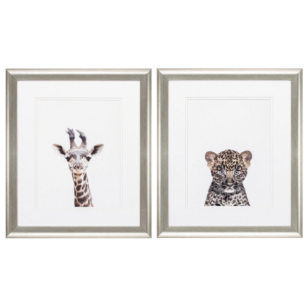 19" X 22" Brushed Silver Frame Giraffe Leopard (Set of 2)