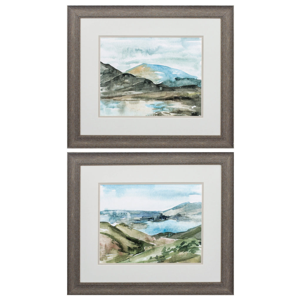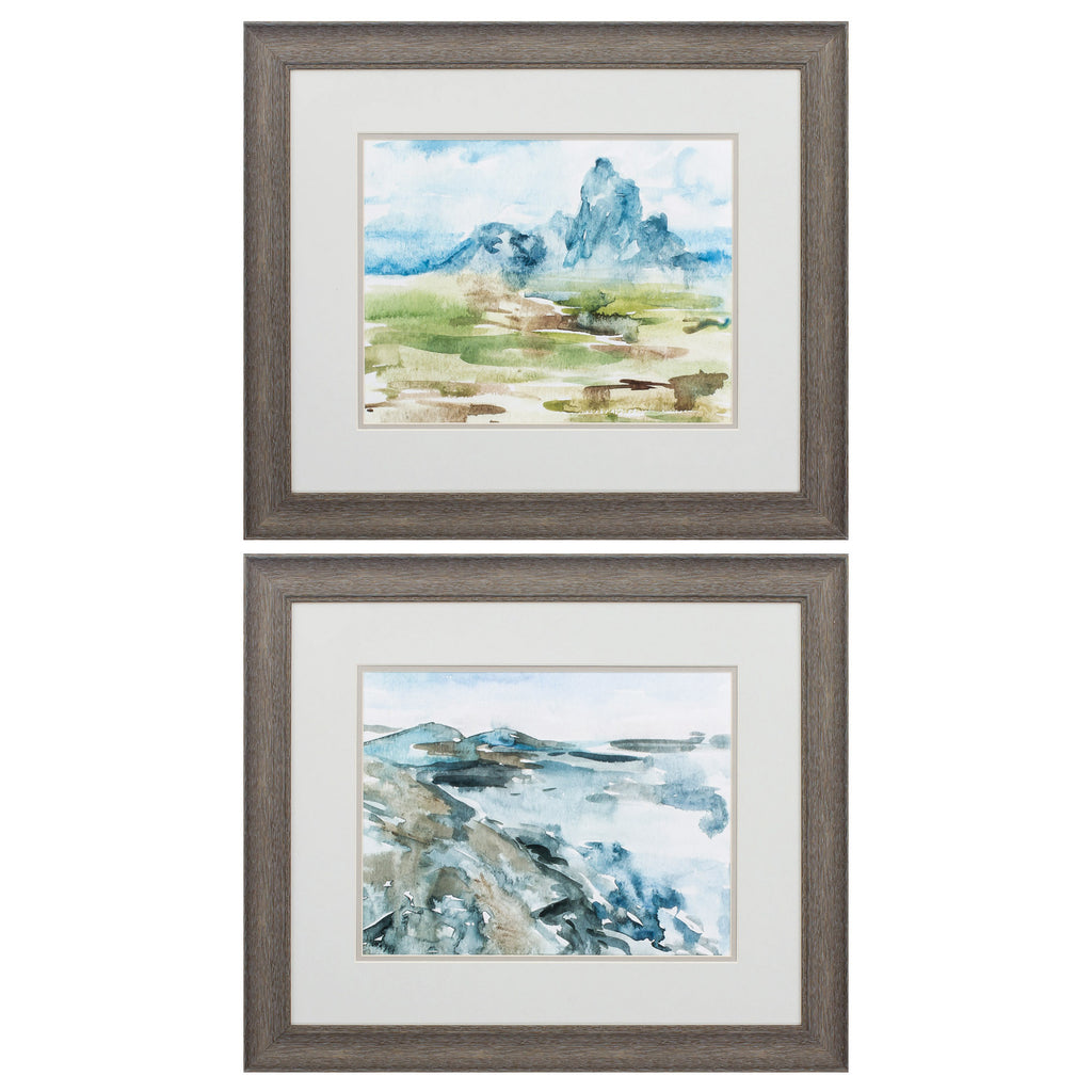 22" X 19" Distressed Wood Toned Frame Watercolor Views (Set of 2)