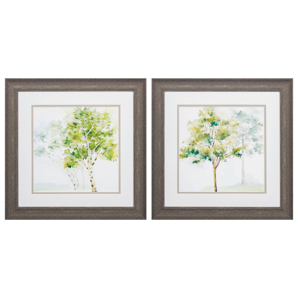 19" X 19" Distressed Wood Toned Frame Woodland Trees (Set of 2)