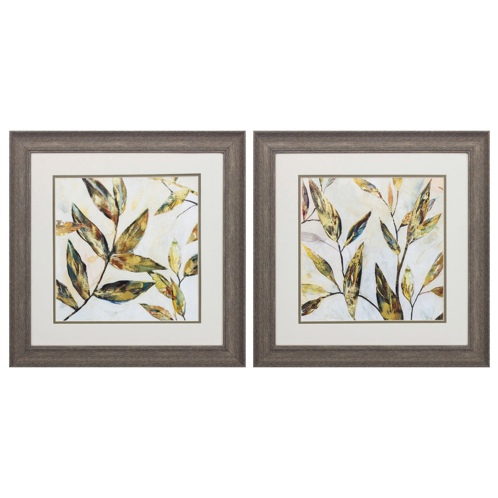 19" X 19" Distressed Wood Toned Frame Gilded Leaves (Set of 2)