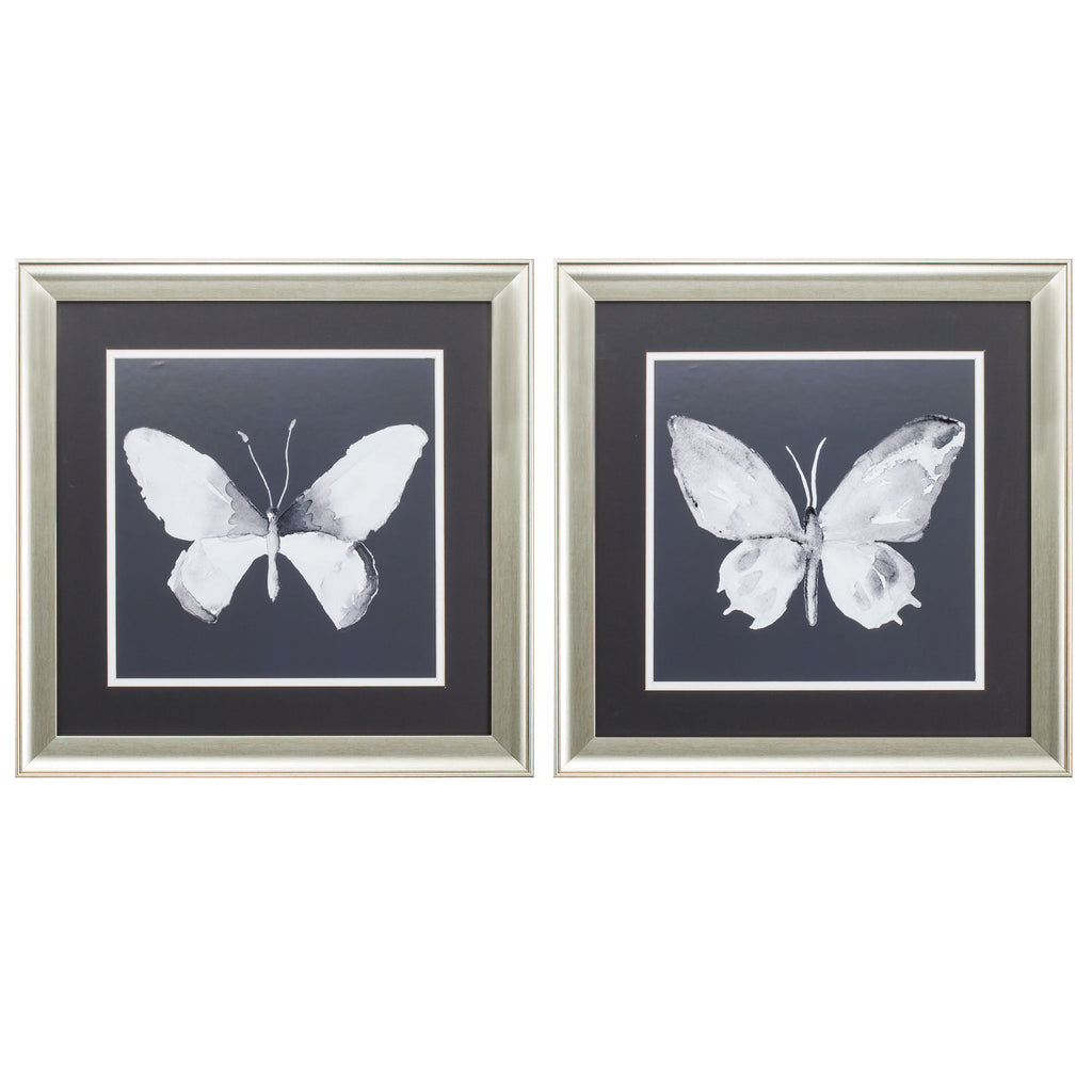 19" X 19" Brushed Silver Frame Charcoal Butterfly (Set of 2)
