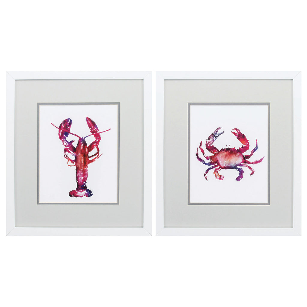14" X 16" Matte White Frame Lobster Crab (Set of 2)